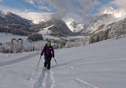 Neben solchen, sehr alpinen Tourenzielen bietet das Tennengebirge auch zahlreiche Möglichkeiten nicht ganz so hohe Berge zu ersteigen. Diese Touren bieten sich vor allem im Hochwinter bei Pulverschnee an, aber auch als Schlechtwettervariante, wenn man die höheren Berge tunlichst meiden sollte. Zu diesen Tourenzielen gehören der Korein (1850m), den wir direkt von unserem Quartier in St. Martin aus erreichen können, oder auch der Frommerkogel (1883m)